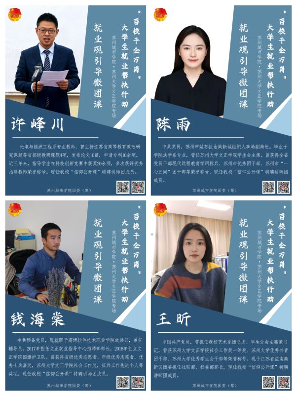 为了进一步优化广大学生的就业择业观,在线上环节设置了就业观引导微团课,许峰川、陈雨、钱海棠、王昕等四位优秀校友分别就升学、就业、征兵入伍、参与“三支一扶”计划等方面进行了主题分享,通过多维度的诠释引导广大学生在笃学践行中发掘潜力、突破极限,在服务社会过程中不断提升自我、登上更大舞台。