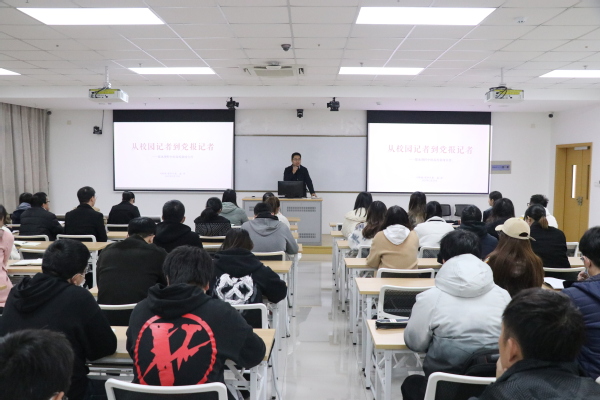 为提高全校通讯员及新媒体运营人员的业务能力和水平,助力学校新闻宣传工作,12月23日上午,《新华日报》记者盛峥应邀来我校作《从校园记者到党报记者——媒体视野中的高校新闻宣传》专题讲座。各部门通讯员、新媒体工作室全体学生、各学生组织新媒体运营负责人参会,讲座由党委宣传部负责人仲宏主持。