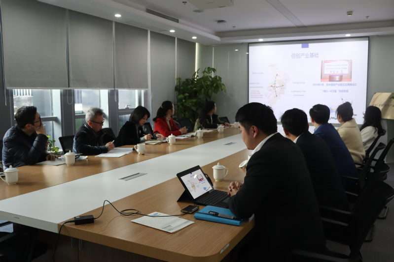 发展委员会办公室党支部书记张海洋就支部概况进行介绍,从党建共建、应用型人才培养、地方产业产教融合、高层次人才引进四个方面进行详细阐述,希望学校与苏州(太湖)软件产业园的全面合作早日落地。