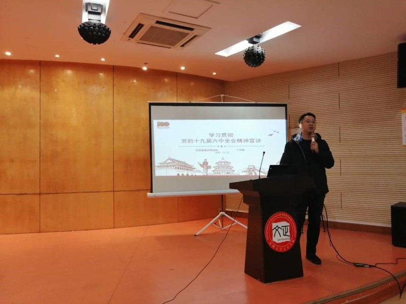 为深入学习贯彻党的十九届六中全会精神、习近平总书记关于青年工作的重要论述,12月27日晚,由校团委(筹)主办,工商管理系团总支承办的“坚定四个自信,担当时代使命——党的十九届六中全会精神辅导报告”“信仰公开课”校级示范课于学生活动中心202举行。我校学习贯彻党的十九届六中全会精神宣讲团成员,工商管理系信仰公开课导师丁良超副教授担任主讲人。工商管理系党员代表以及主要学生干部共计100余人参加本次授课。活动由工商管理系团总支书记庄炜主持。