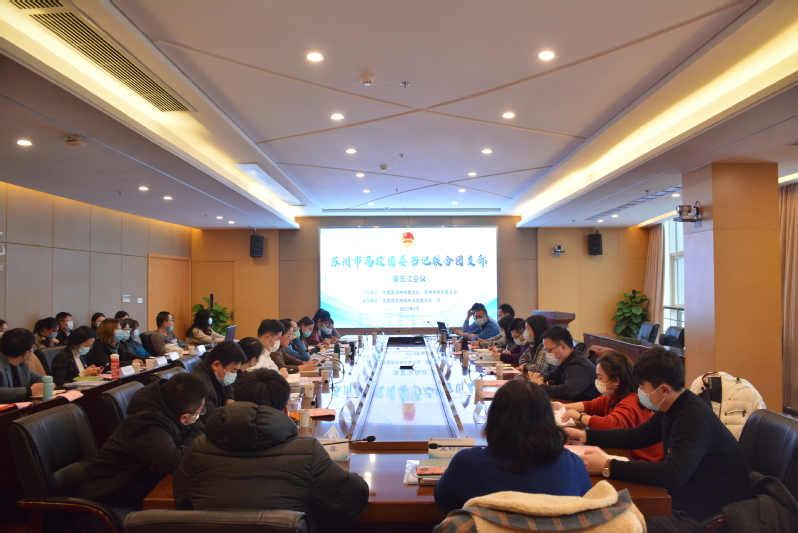 为深入学习贯彻习近平新时代中国特色社会主义思想和党的十九届六中全会精神,1月6日下午,由团苏州市委、苏州市学联联合主办,我校团委(筹)承办的苏州市高校团委书记联合团支部第五次会议在综合楼大会议室顺利召开。校党委常委、副校长毛小勇,团市委副书记蒋妍出席会议并讲话。团市委宣传部副部长吕纯宁、团市委学少部副部长李俊逸、在苏各高校团委主要负责人以及我校各系科团总支代表参加了此次会议。