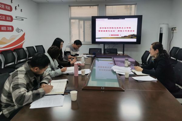 会上,唐旋为与会人员详细介绍了《苏州城市学院“思想道德与法治”课程教学质量提升方案》(以下简称《方案》),本《方案》依托习近平总书记在思想政治理论课教师座谈会上的重要讲话精神,结合中央与我校一系列重要文件,立足学生发展、呼应学校定位、面向社会需求,从教学模式改革、教师专业技能提升等方面提出了“思想道德与法治”课程提质的有效举措。教学模式改革方面重点突破思政课固有空间限制,与社会联动,积极倡导“引进来”与“走出去”相结合:“引智入校”组建与课程密切相关的校外专家库,“带课出校”与有关单位建立长效合作机制,让学生在社会大课堂的实践中“动起来”,真正将马克思主义基本原理转变为学生认同的生动道理。同时,突破学段界限,依托课题持续推进大中小思政课教材一体化研究,在共融中共进。教师专业技能提升方面,切实抓牢教师准入、集体备课、听课互评等各个环节,建设好教师队伍,提升教学质量并同步探索出习近平新时代中国特色社会主义思想更好融入教学的路径。