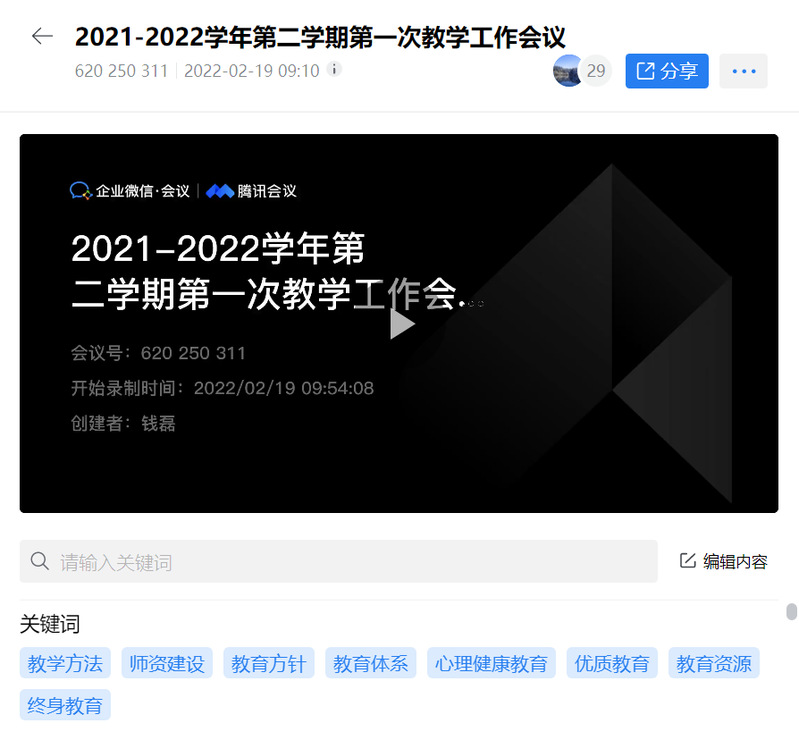 为深入贯彻学习全省教育工作会议精神,精准研判当前教育教学发展新形势,提前谋划我校教学工作部署与安排。2月19日上午,我校通过企业微信会议召开新学期第一次教学工作会议。副校长高雷、各系(室)主任和教务处全体教师参加会议,由张毅驰主持。