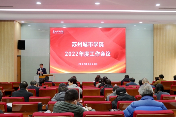 我校党委副书记、校长赵志宏部署学校2022年度重点工作。他指出,2022年是苏州城市学院培基固本的一年,是全面推进转设转型,加快提升办学质量的关键之年,也是学校立足新发展阶段,全面实施“十四五”规划,持续推动高质量发展的关键之年。他主要从以下七个方面对2022年度工作进行部署:一是绷紧思想之弦,统筹推进新冠疫情防控和事业改革发展两个大局,全面守护广大师生员工生命安全;二是“紧紧围绕迎接宣传贯彻党的二十大这条主线,加强思想理论武装,全面落实党的教育方针;三是健全完善党的组织建设,提高党建质量,营造风清气正、干事创业良好生态;四是科学制定“第一规划”,统筹学科专业一体化布局,深化实施教学科研与人才培养综合改革;五是加快二级学院实体化建设步伐,完善内部治理体系,提升内部治理能力,加快推进依法治校和民主治校工作;六是全面启动干部工作和人才工作,着力打造高素质干部队伍,积极实施人才强校战略,系统加强三支队伍建设;七是积极拓展外部资源,切实加强内部保障,系统构建支撑高质量发展的强大合力。