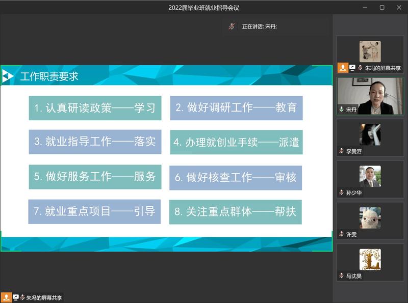 为在疫情防控期间认真贯彻落实省委、省政府关于做好大学生就业工作的要求,进一步做好2022届毕业生就业指导和服务工作,3月31日下午,我校通过线上方式召开2022届毕业班就业指导会议,2022届全体毕业班班主任参会,会议由招生就业处临时负责人宋丹主持。