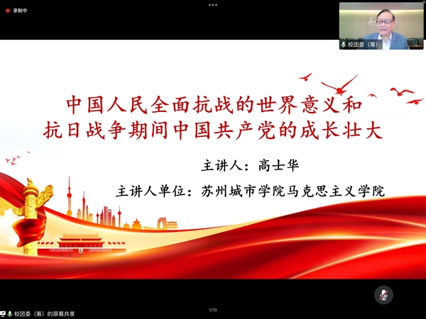 马克思主义学院院长高士华为全体学员带来了以“中国人民全面抗战的世界意义和抗日战争期间中国共产党的成长壮大”为主题的公开课,首先他概述了抗战的世界意义,简单介绍了抗战的重大事件,向学员们强调了中国共产党在抗战中的重要作用,随后他从《论持久战》、以农村包围城市的理论和实践、三大法宝理论和中国共产党在抗日战争期间的作为得到海外人士的极高评价的四个方面展开讲述中国共产党成长壮大的历史进程。系统展现了中国人民全面抗战对世界有着不同凡响的意义,为世界反法西斯战争做出了巨大贡献,值得感悟与铭记。