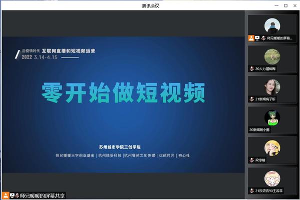 为提升我校学生创新创业能力,3月14日至4月15日,我校教务处(三创学院)举办2022年春学期创业能力提升班,主题为“后疫情时代互联网直播及短视频运营”。本次培训班特邀师兄暖暖大学创业基金负责人刘仕联以及杭州维托科技、杭州瑞驰文化传媒等机构运营团队专家慕容、殷海波、章睿为主讲人,采用理论结合实践,线上授课形式进行。教务处(三创学院)周建军、迮宇以及100余名同学参加此次创业能力提升班。