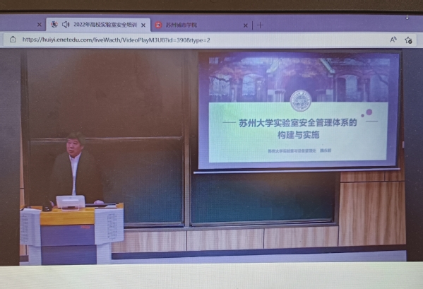 为确保常态化疫情防控中高校实验室安全运行,保障广大师生人身安全和校园稳定,落实全国高等学校实验室安全工作会议精神和《教育部办公厅关于组织开展2022年高等学校实验室安全检查工作的通知》(教发厅函[2022]11号)文件部署,4月19日,教育部召开2022年高校实验室安全培训会。我校实验室建设与管理中心组织相关老师在线参加学习。