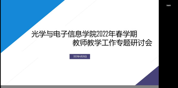 为进一步规范教学管理,提高教师的业务水平,并全面了解特殊时期下教学运行情况,加强对教学过程的监测与管理,光学与电子信息学院组织开展期中教学检查工作。