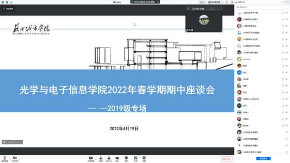 为了解学生线上教学期间面临的困难,帮助学生解决具体问题,学院以年级为单位组织召开了一至三年级期中教学座谈会,学生工作临时负责人尹维军、教学工作临时负责人陈蕾、各专业建设负责人、各年级辅导员及相关班级班主任参加座谈会。