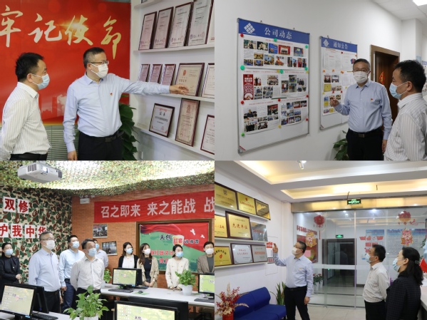 任国强带领全体人员参观天创科技荣誉墙、产品展示厅和红客训练营攻防实训平台等,了解天创科技的发展历程、业务模式和产品研发等情况。