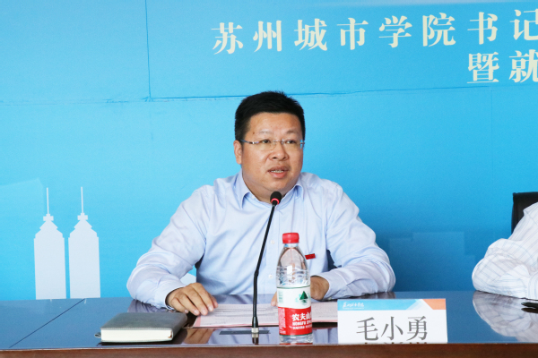赵志宏对长期支持学校建设和发展的嘉宾、朋友表达感谢和诚挚的问候,也为毕业生求职就业代言助力。他表示,学校历来重视就业工作,始终强化就业“一把手工程”和“全员责任制”保障,建立了校领导统筹、多方联动、部门协同、全员参与的促就业机制,搭建了校内校外资源共赢共享的就业服务体系,通过不懈努力,近年来,学校毕业生年终就业去向落实率始终保持94%左右。已就业毕业生中,选择在苏州就业的超过60%。