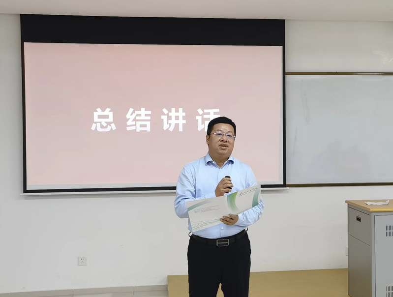 毛小勇做总结讲话,他在讲话中充分肯定了此次比赛的意义和价值,勉励团干部们坚持理论学习与实践养成的工作作风,始终把工作重点聚焦在青年学生的“急、难、愁、盼”的事情上。在学校转设转型发展的重要时期,认真做好青年大学生思想引领工作,做青年大学生可敬、可信、可靠的贴心人,助力青年大学生凝聚起奋进新时代的青春力量。
