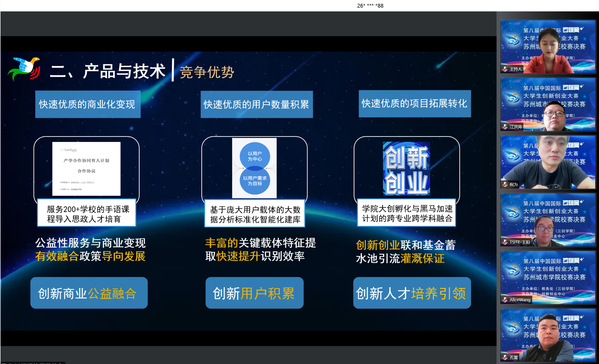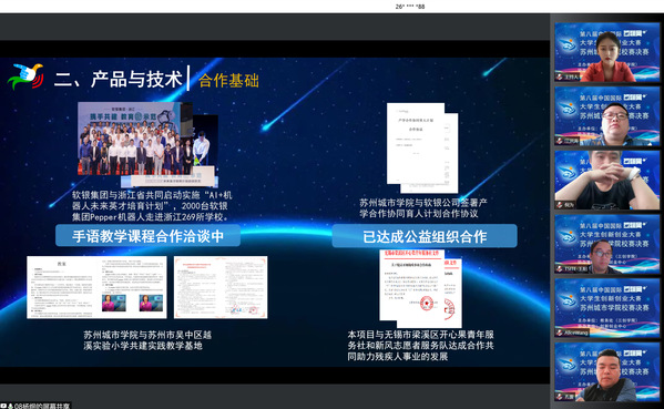 5月18日下午,我校2022年“互联网+”大学生创新创业大赛校赛圆满落幕。本次校赛从4月13日开始报名,各院(系)共报名项目470多个,参赛人员2600余人。经过前期训练营辅导、材料网评、初赛等阶段,共有18个项目进入校赛决赛路演。校赛路演采用线上形式,特邀苏州英诺菲科创业孵化管理有限公司王阳,苏州链接力区块链科技有限公司江洪涛,江苏聚创星企业孵化管理有限公司倪为,千行资本管理有限公司孔雷,江苏嘉天合科技产业投资有限公司王苑担任评委,教务处(三创学院)周建军、迮宇老师及各项目指导老师观摩路演。