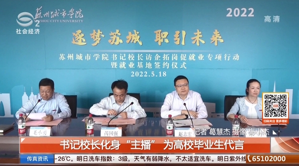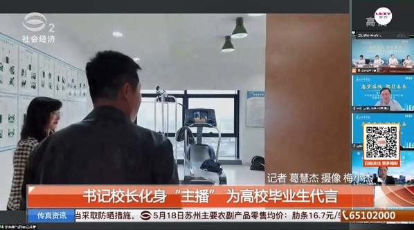 在会议室,苏州城市学院党委书记、校长化身“主播”为毕业生代言。