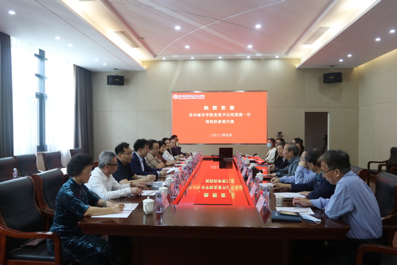 芮国强首先向在座学校领导的热情接待表达谢意,对学校近年来取得的发展成果表示赞许,也对朱秀林校长以生为本、因材施教的办学理念深表认同。他介绍了苏州城市学院的基本情况,学校自转设以来,目前面临的任务是回答好三个问题:转设之路如何走?转型之路如何走?提升之路如何走?虽然学校正经历师资队伍、干部队伍和办学空间的困境,但作为一所苏州市属的公办院校,学校将肩负使命、开闯新路、勇毅前行,秉持“地方性、应用型、开放式、特色化”的办学理念,以师生爱戴、同行尊重、社会认可、人民满意为办学使命,以立足苏州、服务江苏、辐射长三角、影响全国为服务面向,努力创建具有中国特色、时代特征、鲜明特点的国内一流应用型大学。期待此次交流,成为双方寻求合作、接续发展,共创携手奋进的新征程。