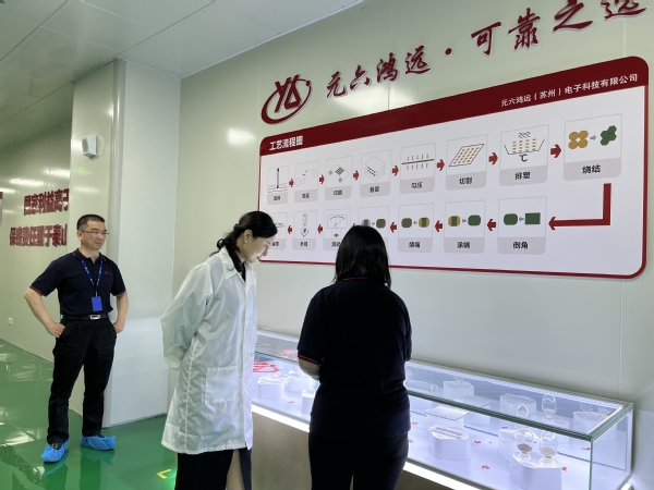 5月25日,李萍带队赴元六鸿远(苏州)电子科技有限公司参观学习。公司总经理周海波对我校一行的到访表示热烈欢迎,详细介绍了公司的发展历程以及发展现状。元六鸿远(苏州)电子科技有限公司是主板上市公司鸿远电子在苏州的全资子公司,主营业务为多层瓷介电容器、滤波器等电子元器件的研发、生产和销售,产品可广泛应用于航天、航空、船舶、电子、兵器及车载、医疗等领域。周海波表示,元六鸿远(苏州)电子科技有限公司始终秉承“发展企业,有益员工,服务社会,报效祖国”的企业宗旨,希望能和高校深度合作,广纳人才。座谈会上,双方围绕人才培养、薪酬福利、产学研合作等方面进行了深入交流。随后,我校走访人员参观了元六鸿远(苏州)电子科技有限公司的展厅和生产车间。