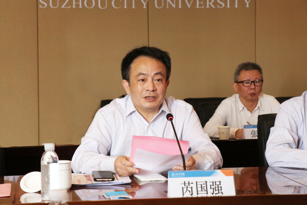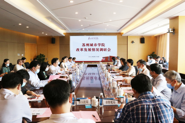 芮国强在主持中对各位领导莅临我校调研和指导表示感谢。他简要陈述了我校新任领导班子到任后各项工作的开展情况,围绕疫情防控、校园安全稳定等工作详细介绍了苏州城市学院自组建以来的运转情况,着重汇报了当前面临的困难以及需要市委市政府及有关部门在机构编制、办学经费、校舍建设、校园环境治理等方面支持、帮助的具体事项。他表示,苏州城市学院自转设以来,挑战与机遇并存,就当前发展所面临的问题和需求,学校一定会主动担当,加强与上级部门的沟通与联系,推进学校各项工作稳妥有序开展,也恳请市委市政府及有关部门继续给予苏州城市学院支持与指导。