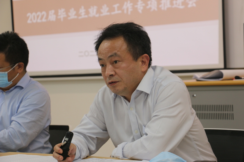 赵志宏总结发言。针对2022届就业工作推进,他希望形成三点共识:一是要高度重视,提高政治站位。要把促进毕业生更加充分更高质量就业摆在突出重要的位置;二是要切实提升责任感和使命感。勇于担当,主动作为,抓住窗口期、关键期,精准发力;三是要压实责任,强化就业责任的落实率。做到任务明确、目标量化、责任到人、考核到位,抓紧抓实抓细抓好毕业生就业指导与服务工作。他强调,学校将始终坚持“稳就业、保就业”的目标导向,通过整合资源、深挖潜力、精准施策、多措并举,努力转“危”为“机”,切实做到举全校之力、集全员之功、使全体之劲,促进我校2022届高校毕业生就业工作顺利完成。