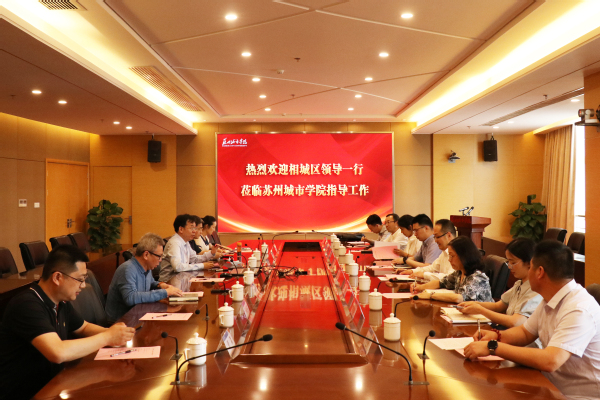 相城区政协副主席、区人社局局长金燕,相城区科协副主席沈威巍,相城区工信局副局长李晓晓,相城区人社局党组成员、区人管中心主任俞婷,相城区黄埭镇副镇长孙迎辉,相城区太平街道党工委委员费晓华,相城区渭塘镇经发局副局长计晓敏,相城区政府办公室政务科科长崔振,我校党委办公室、校长办公室(合署办公),发展委员会办公室,学科建设与科研工作处,人事处、党委教师工作部(合署办公),招生就业处等部门负责同志参加此次交流会,双方并就学科建设、科学研究、人才培养、招生就业等具体事项作了深入交流。