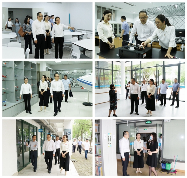 在会议正式开始前,我校党委常委、纪委书记李萍带领相城区人民政府刘强副区长一行参观校园,实地走访综合实验楼、理工楼、空乘楼、国际交流学院、三创学院、图书馆等地,重点参观了我校数控加工、特种加工、工业机器人、机电一体化、液压气动等实验室,详细了解我校学科建设情况和人才培养情况。