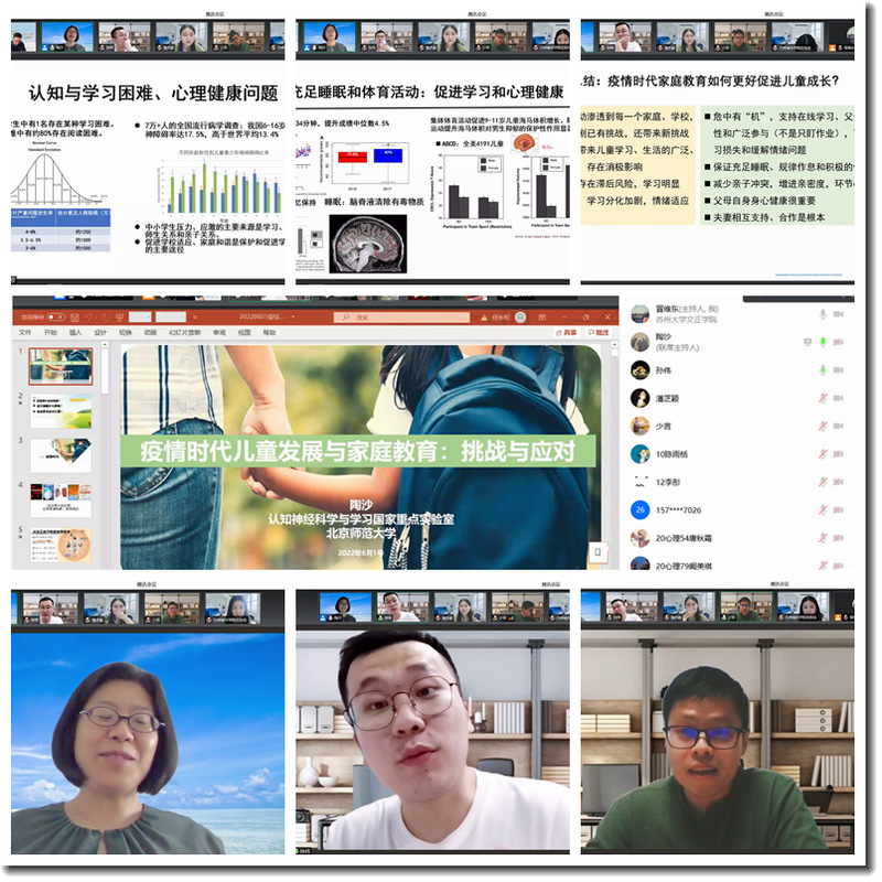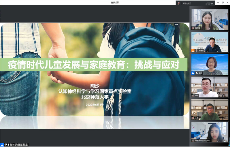 为满足我校教职工对提高疫情时代家庭教育质量、加强儿童青少年学习适应能力的需求,6月1日晚,由工会主办、党委学生工作部(处)协办的“疫情时代儿童发展与家庭教育:挑战与应对”“六一”儿童节专题讲座,以线上直播形式依托腾讯会议平台顺利举办。本次讲座特邀北京师范大学认知神经科学与学习国家重点实验室教授、儿童青少年脑智研究中心主任陶沙主讲。讲座由工会负责人冒维东主持。