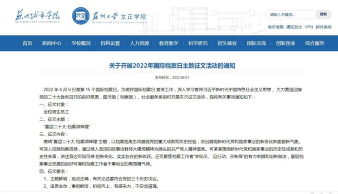 6月1日,以“喜迎二十大·档案颂辉煌”为主题,面向全校师生员工开展主题征文活动,引发师生热烈反响。本次征文活动鼓励师生以档案的视角展现党的重大成就和历史经验,激发了全校师生深入学习宣传习近平新时代中国特色社会主义思想的热情。