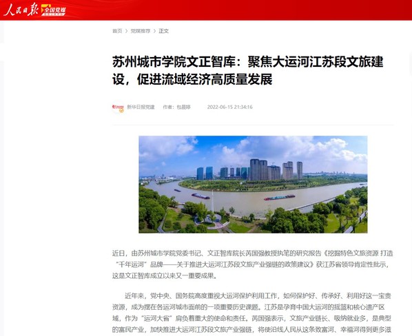 近日,由苏州城市学院党委书记、文正智库院长芮国强教授执笔的研究报告《挖掘特色文旅资源 打造“千年运河”品牌——关于推进大运河江苏段文旅产业强链的政策建议》获江苏省领导肯定性批示,这是文正智库成立以来又一重要成果。