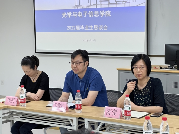 6月15日下午,光学与电子信息学院在综合楼122组织召开2022届毕业生恳谈会。学院学生工作负责人尹维军,教学工作负责人陈蕾,全体辅导员出席恳谈会。招生就业处负责人宋丹受邀参加本次恳谈会。恳谈会由辅导员张鹏远主持。
