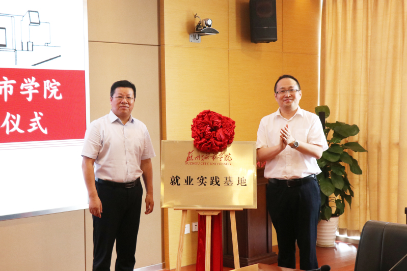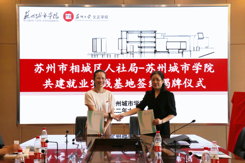 金燕与宋丹签署就业实践基地合作协议,刘强与毛小勇共同为就业实践基地落地揭幕。