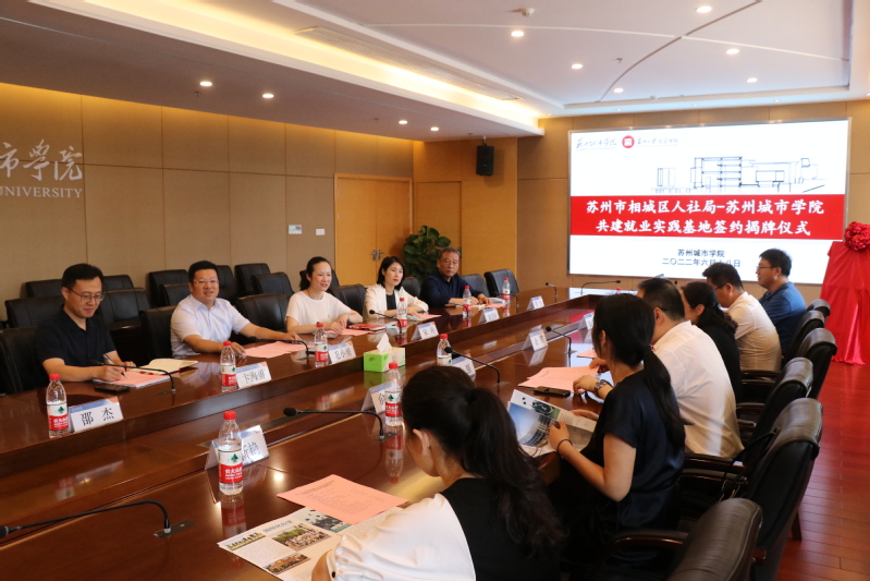 相城区人社局党组成员、区人管中心主任俞婷,区政府办公室政务科科长崔振,区人管中心副主任许新艳,相城区人社局团支部书记俞巍,我校学生工作部(处)负责人卞海勇,团委(筹)负责人崔苏妍,教务处实习中心负责人黄新,党委宣传部邵杰参与座谈交流,双方就人才培养、实习实践等具体事项作了深入交流。
