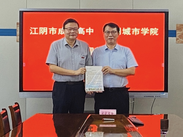 赵志宏校长参加江阴市成化高级中学送喜迎新活动,活动由我校招生就业处负责人宋丹主持。
