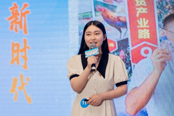 在比赛中,潘芝颖讲述了时代楷模黄文秀的动人事迹,呼吁广大青年同志要以黄文秀同志为榜样,在新时代的长征路上做出贡献,展现了高校青年教师的良好风貌。
