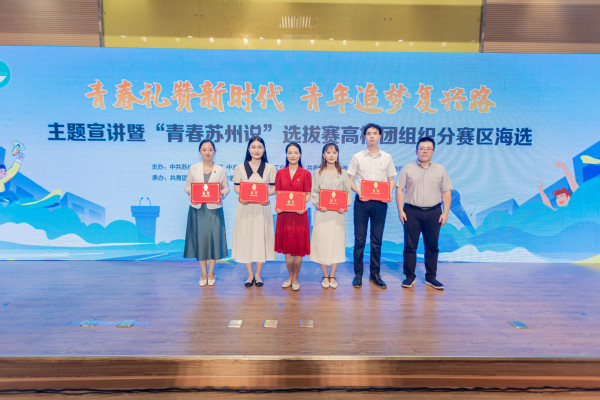 7月28日下午,由中共苏州市委宣传部、中共苏州市委教育工作委员会、共青团苏州市委员会、苏州市广播电视总台主办,共青团苏州市职业大学委员会承办的“青春礼赞新时代、青年追梦复兴路”主题宣讲暨“青春苏州说”选拔赛高校团组织分赛区海选在苏州职业大学落下帷幕。我校法政系团总支书记潘芝颖荣获比赛三等奖。