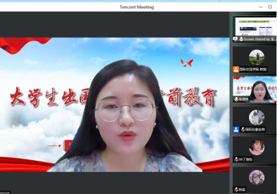 最后,唐凤珍老师做总结发言,唐老师期望所有赴国(境)外交流学习的同学一方面要做好学业规划、合理利用资源、实现学术成功;另一方面,也要时刻谨记中国人的身份认知和民族认同感,主动维护国家安全和民族利益,做胸怀天下、道德高尚、专业素质强的新时代优秀留学生。