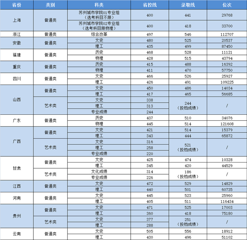 外省计划数1207人,与去年持平,生源占比42.64%,外省考生报考热度继续走高,录取投档分稳中有升,各省市文、理科录取分数线均超省控线40分以上,其中广西壮族自治区文、理科分别超省控线93分和101分;河南省文、理科分别超省控线78分和106分;广东省历史等科目类、物理等科目类录取分数线分别超省控线73分和69分;福建省历史等科目类、物理等科目类录取分数线分别超省控线60分和87分;重庆市历史等科目类、物理等科目类录取分数线分别超省控线73分和59分;四川省文、理科录取分数线分别超省控线60分和65分;计划数较多的甘肃、贵州、云南等省文、理科录取分数线均较去年有了进一步的提升,具体各省市录取情况详见下表。