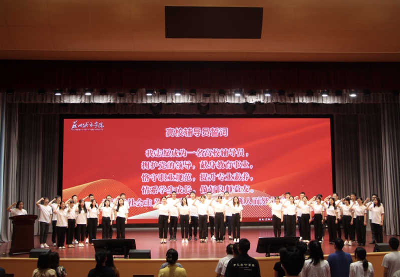 会议第二阶段,我校2022年新进辅导员宣誓仪式庄严举行。在副校长吴昌政的监誓下,全体新进辅导员齐声宣读《高校辅导员誓词》。