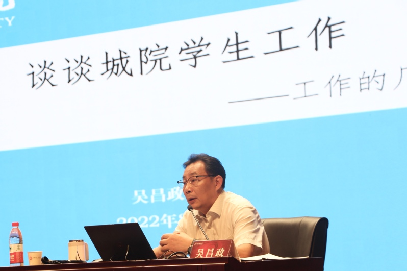 会议第一阶段,副校长吴昌政以《谈谈城院学生工作——工作的几点想法》为题发表讲话,与全体学生工作干部“谈心”。他从根本任务、现实状况、理念思路、工作要求四个方面对我校学生工作进行深刻剖析。首先,他指出,学校的根本任务是立德树人,如何“立好德”“树好人”是我们必须面对的重要任务,必须坚持贯彻党的教育方针,坚持社会主义办学方向,做到为党育人、为国育才。其次,他立足过去、面向未来,提出学生工作要“吸收、融合、再创造”,并要求各部门从纵向、横向、内部、外部等多个维度对学校的学生工作现状作一次全面的比较分析,在此基础上形成适合城院团学工作的方法路径。再次,他提出坚持服务学生成长成才的工作理念和引导性、激励性为主的工作思路,要求全体学生工作干部加强政策文件学习,及时评估管理方式、管理水平,按照“稳在基础、升在特色、功在坚持、成在适合”的原则落实好实践好我们的工作理念。最后,他从职业、职责、工作、学生等多个视角向全体学生工作干部进一步明确了工作要求。此外,他还介绍了自己在学生工作方面的主要任务和重点工作,并具体部署了近期有关工作。