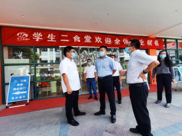 为确保新学期全校师生在良好的校园环境中学习、工作和生活,近几日,党委常委、副校长毛小勇在基建与后勤管理处负责人陪同下,对食堂与商业街、学生公寓、防疫安排与物资准备、教学楼、学校新校门工地及周边道路等重点区域进行检查。