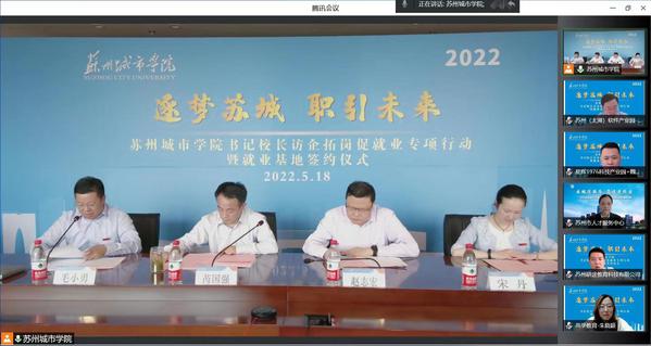 深入落实就业工作“一把手”工程,校领导班子通过实地走访、线上座谈、电话调研等方式开展访企拓岗专项行动,截止目前累计访企79家。5月18日,通过现场直播+线上会议的方式举行了首批就业实践基地云签约仪式,苏州(太湖)软件产业园、中国建设银行股份有限公司苏州分行、苏州易德龙科技股份有限公司等29家单位参加。