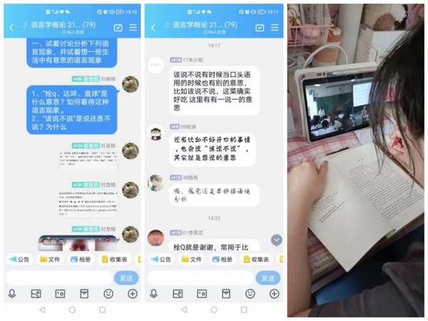 文学与传播系刘慧楠老师的《语言学概论》课主要以“qq群讨论+观看视频+阅读课本”的形式开展。她认为,通过对日常生活中语言现象的讨论,可以激发学生对语言学的兴趣,让学生体会语言学的重要性;通过观看视频、阅读课本,可以让学生了解什么是语言学、语言学的内部分类等理论知识。课上,学生表现出对这一形式课堂的兴趣,积极参与讨论,认真做笔记,教学取得良好效果。
