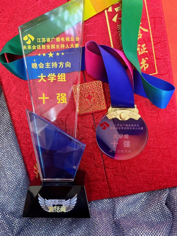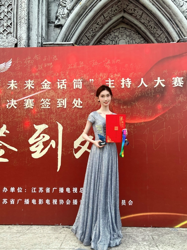 8月26日,由江苏广电总台主办的第九届“未来金话筒”全国主持人大赛总决赛在南京圆满落下帷幕。我校文学与传播系播音与主持艺术专业20级学生邵思玥荣获晚会主持类全国十强。