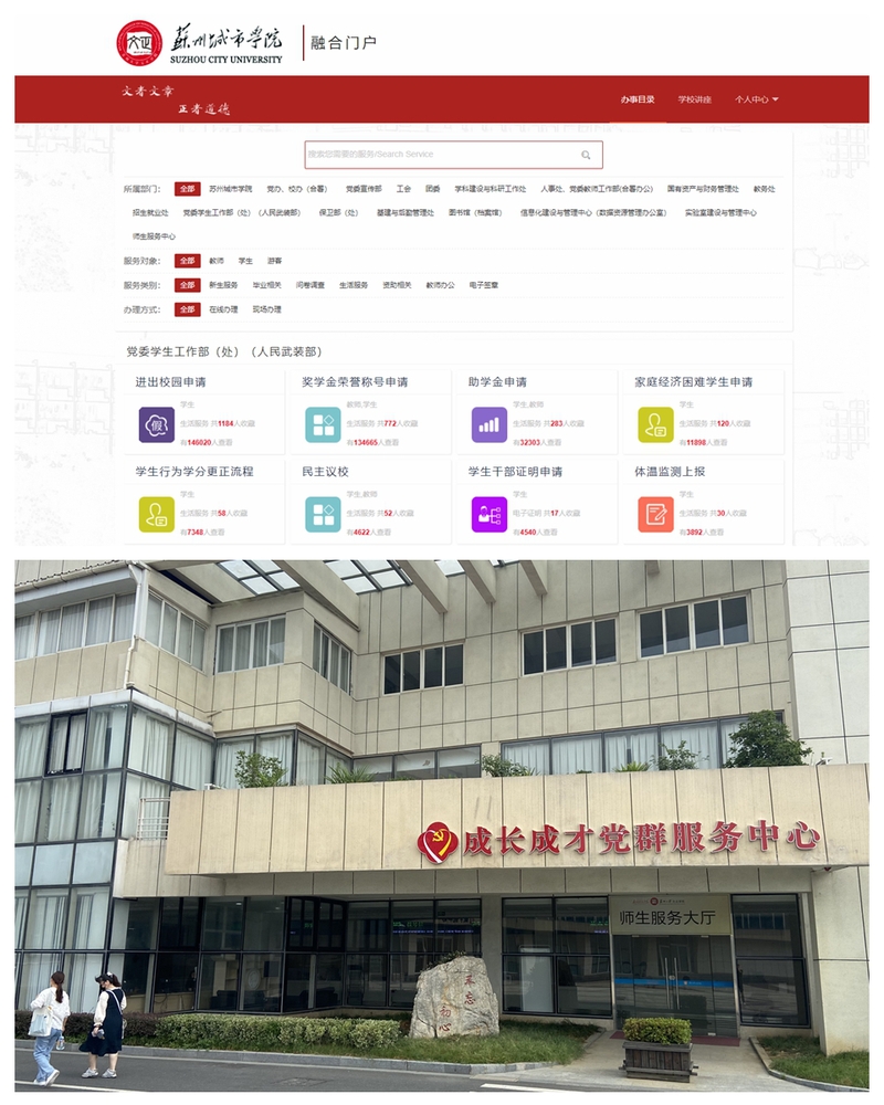 我校“一站式”学生社区还不断完善党群服务体系,统筹线上线下服务载体,拓展“三自育人”平台,营造全时服务社区。一方面,我校依托成长成才党群服务中心打造了“线上+线下”的“一站式”学生服务大厅,各职能部门涉及学生事务服务项目本着应进能进尽进的原则,通过对各项事务流程标准化规范化建设,已形成 180 多项规范化服务项目的在线查询功能,其中线下办事大厅可直接办理的项目30余项,网上办事大厅可直接办理的项目70余项。另一方面,我校还充分发挥学生在社区建设中的主体作用,充分利用学生社区多元空间,依靠院(系)团学组织、学生事务服务中心、学生民主管理委员会等 20 余个学生自治组织,推动学生服务向学生社区下沉,营造学生“自我教育、自我管理、自我服务”的学生社区文化,打造全时服务型社区。