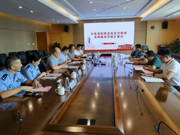 按照省教育厅统一部署,9月1日上午,由苏州科技大学保卫处处长朱永涛,苏州大学应用技术学院保卫处处长金红祥,苏州经贸职业技术学院保卫处处长蔡达君等同志组成的专家组来我校进行高校常态化安全工作检查。我校党委常委、副校长毛小勇,保卫部(处)负责人钱伟超,社区民警王之宣,驻校民警魏贵昌及保卫部(处)全体保卫干部参加会议并陪同检查。会议由苏州科技大学保卫处处长朱永涛主持。