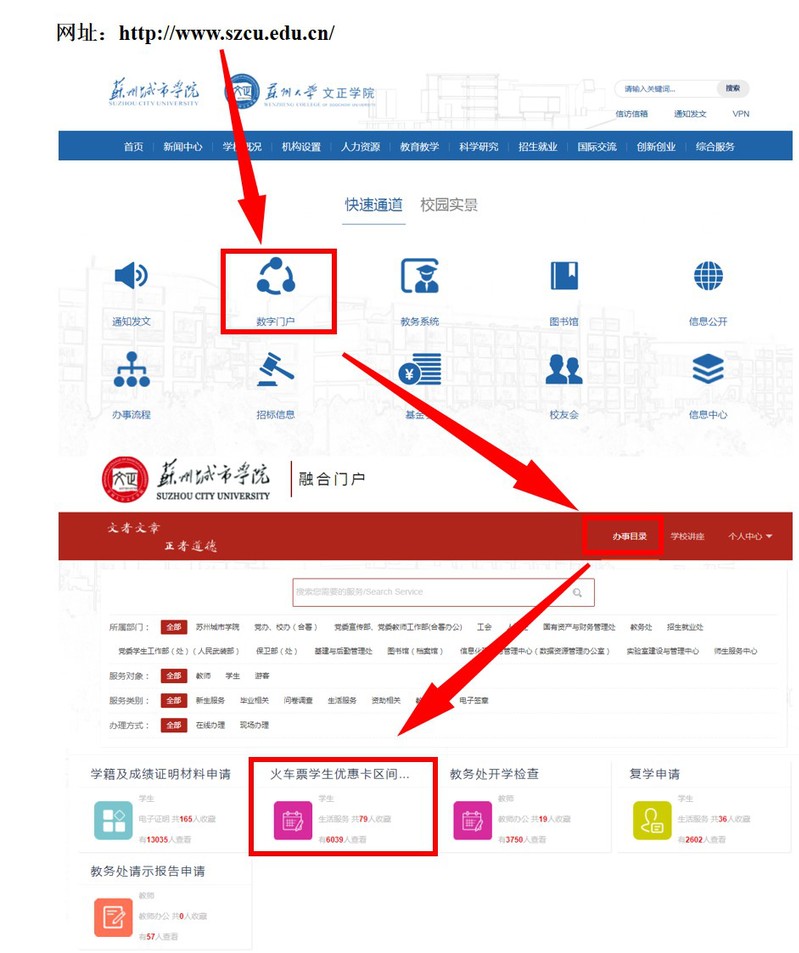 2022级新生自行登录学校数字门户网站,依次选择办事目录—教务处—火车票学生优惠卡区间登记,流程如下图: