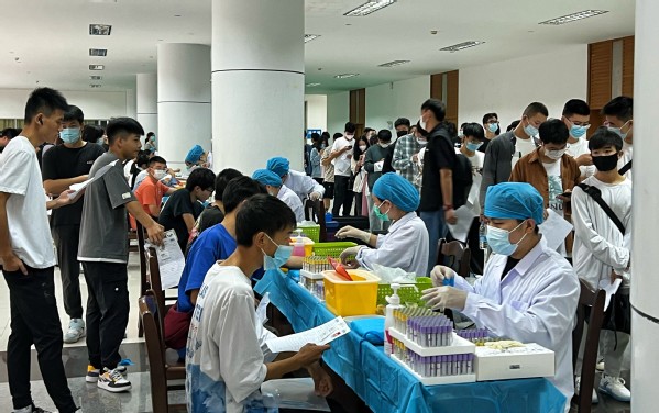 9月5日、6日两天,在学生活动中心二楼为新生安排了体检,包括抽血、内科、外科、胸透等检查项目。部门负责老师根据新生总人数、医务人员人数和场地容纳量,以半小时为单位、提前安排了各专业新生体检相应的时间段,确保现场有序安全。