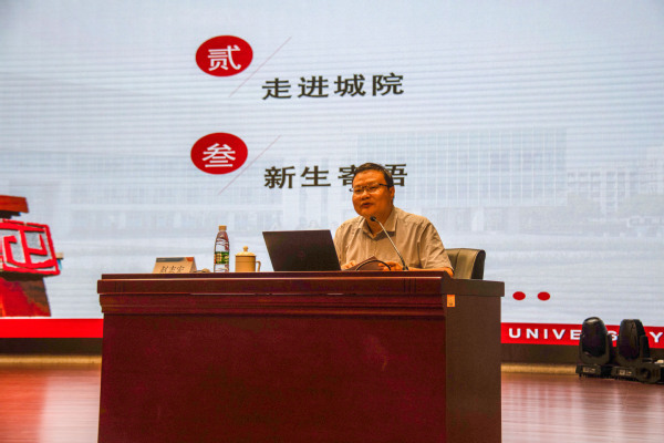 9月21日晚上,校长赵志宏在综合楼多功能厅,为2022级新生带来新生第一课,他从认识苏州、走进城院、新生寄语三个方面展开授课。