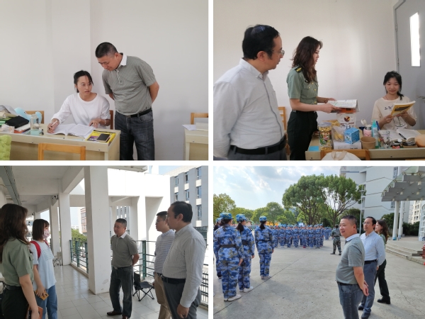随后,一行人来到操场附近实地视察了22级新生军训情况,22级军训指导员徐宁详细介绍了新生军训训练计划以及训练过程管理等相关情况。