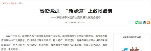 转设一年多来,面对世界新一轮科技革命和产业变革,面对我国社会主义现代化建设,面对高等教育发展和地方发展需求,苏州城市学院主动呼应,稳扎稳打、层层递进,有序有效地推动转设转型和高质量发展,从人才培养、学科建设、科研创新、服务地方等方面进行改革深化,作出了时代应答、教育应答、主动应答。