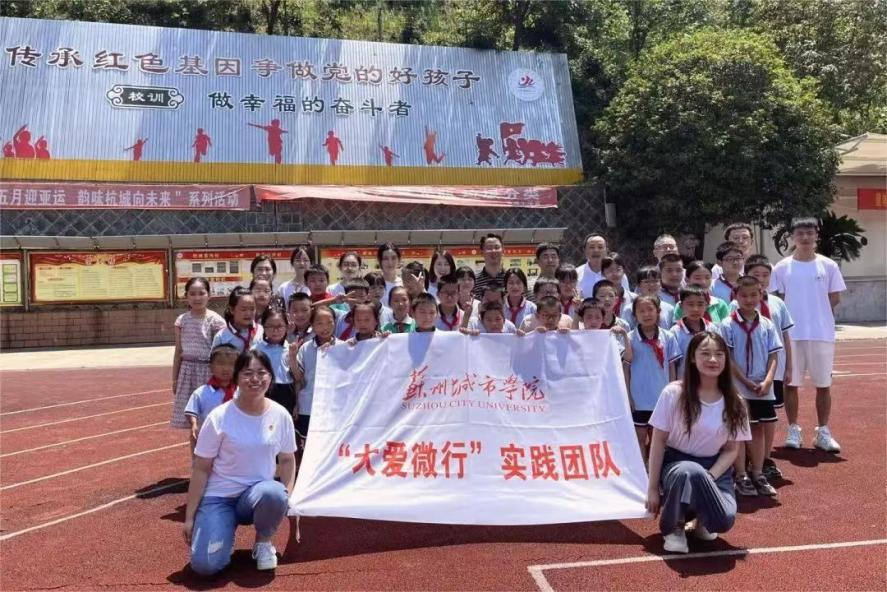 此外,我校坚持自有志愿服务品牌建设,今年7月,“大爱微行”实践团队奔赴苏、浙、黔三省三地开展实践活动。浙江小分队前往临安区太阳镇横路小学开展支教活动,前期共筹措两万元助学金及价值一万元文具提供给当地学生。同时,校团委(筹)与横路小学签约合作共建协议,探索大中小学生思政教育一体化研究路径,进一步拓展实践育人的理论深度。团队成员打造了以《范仲淹百字铭》为主题的思政教育课程,通过多元课程体系建设,丰富支教内涵。“大爱微行”苏州小分队以让时代新人深入了解共青团及团背后的故事为出发点,设计系列团史课程,推动青年精神的传播与发展。“大爱微行”贵州小分队充分发挥自身专业优势,向贵州山区儿童普及团文化及历史。